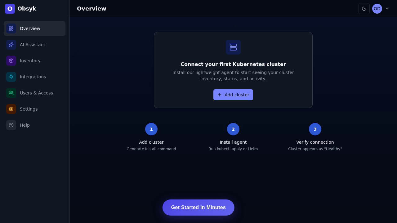 Deploy in 2 minutes. No agents to configure. Instant visibility into pods, services, RBAC, and more.